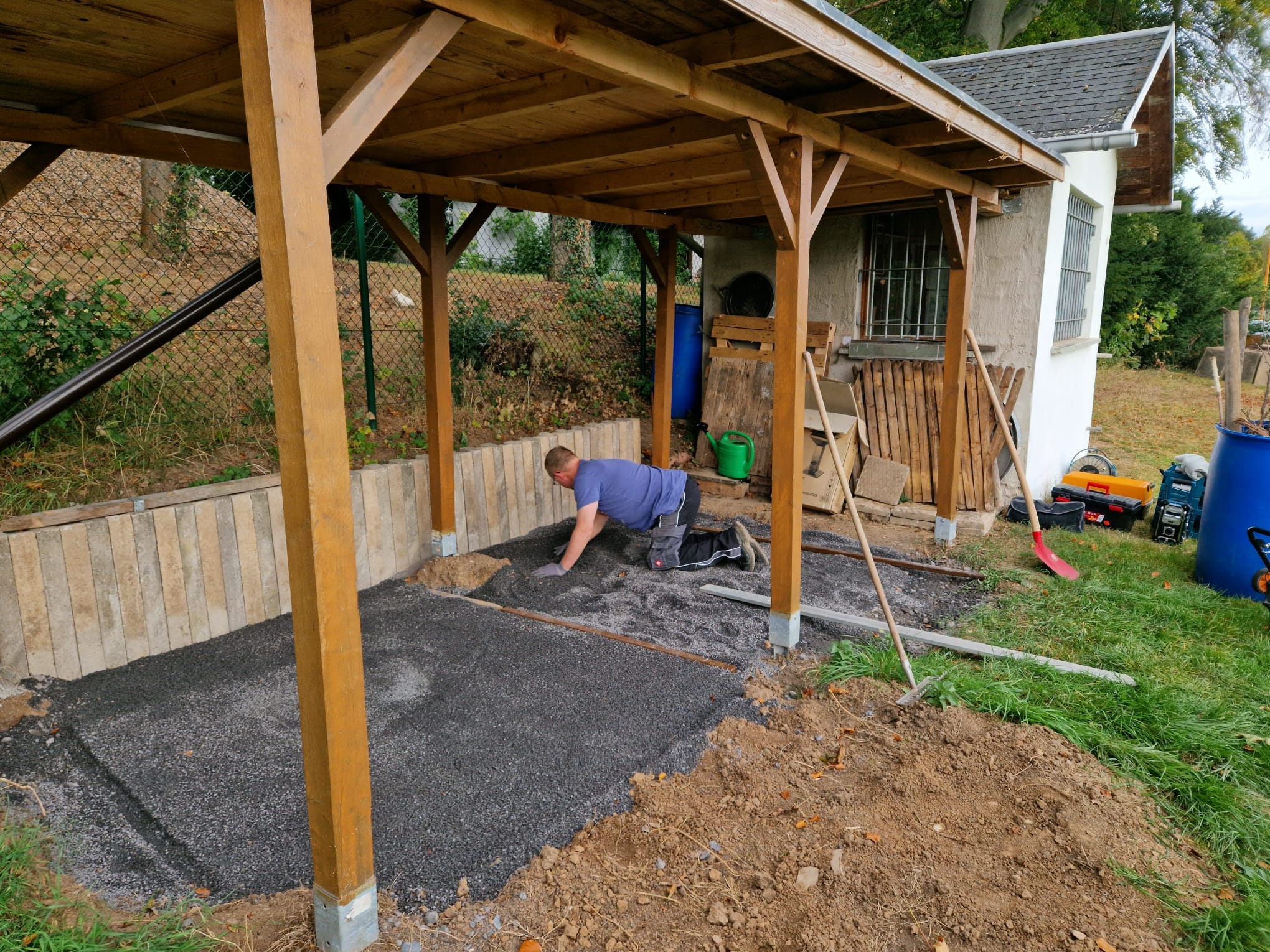 In den vergangenen Wochen waren unsere Mitglieder damit beschäftigt, die Schützenlinie und unser Carport auf Vordermann zu bringen. In zahlreichen Arbeitsstunden konnte die alte unebene Schützenline vollständig entfernt und nun durch eine ebene gepflasterte Linie ersetzt werden. Auch unser Carport wurde gepflastert, um unsere Scheibenständer über den Winter angemessen lagern zu können.