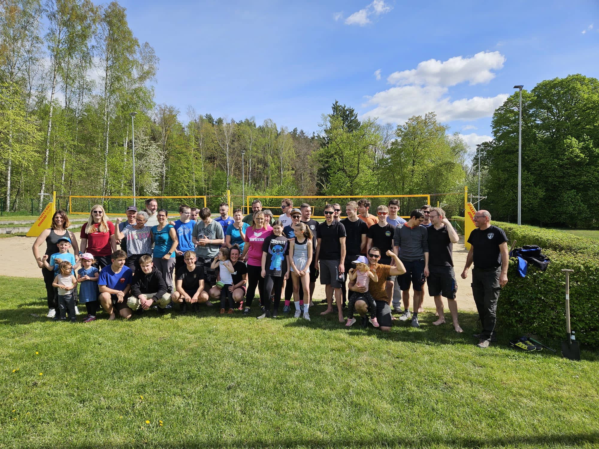 Runde 40 Vollerballer und Volleyballerinnen, von groß bis klein und jung bis alt beteiligten sich beim Aufbau. Und so ging alles schnell von der Hand und man konnte im Anschluss eine Bratwurst zum Mittagessen genießen.