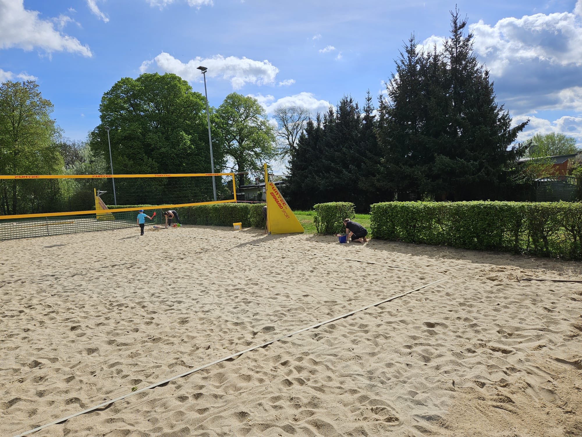 Bei bestem Wetter wurde, mittlerweile routiniert, unsere 4-Felder-Beachanlage bereits am 13. April aufgebaut.