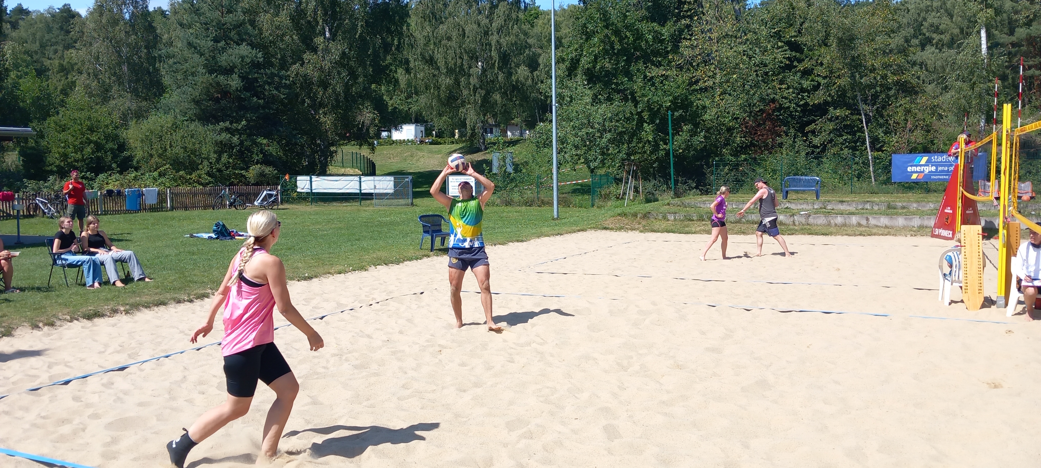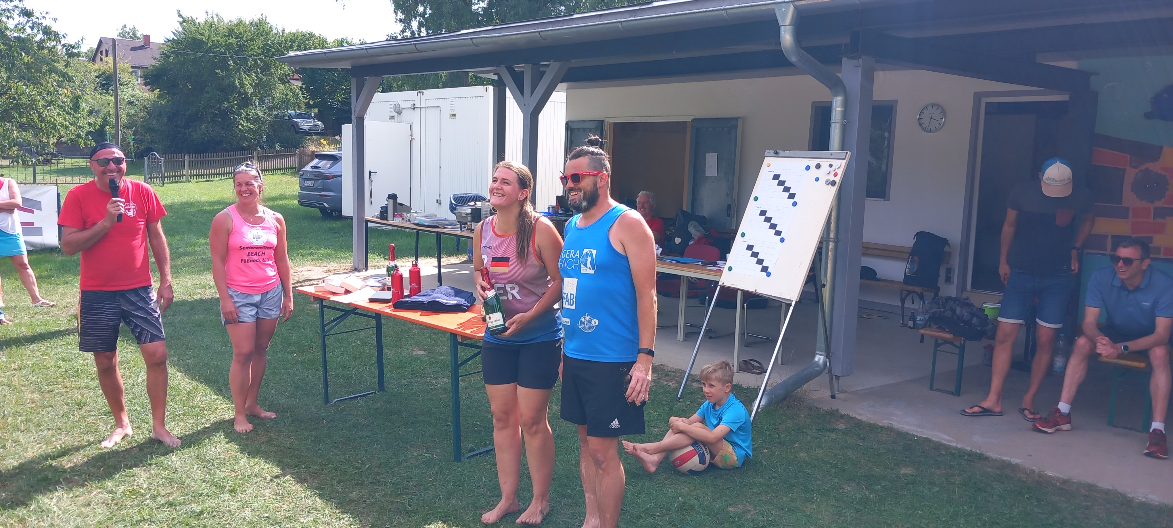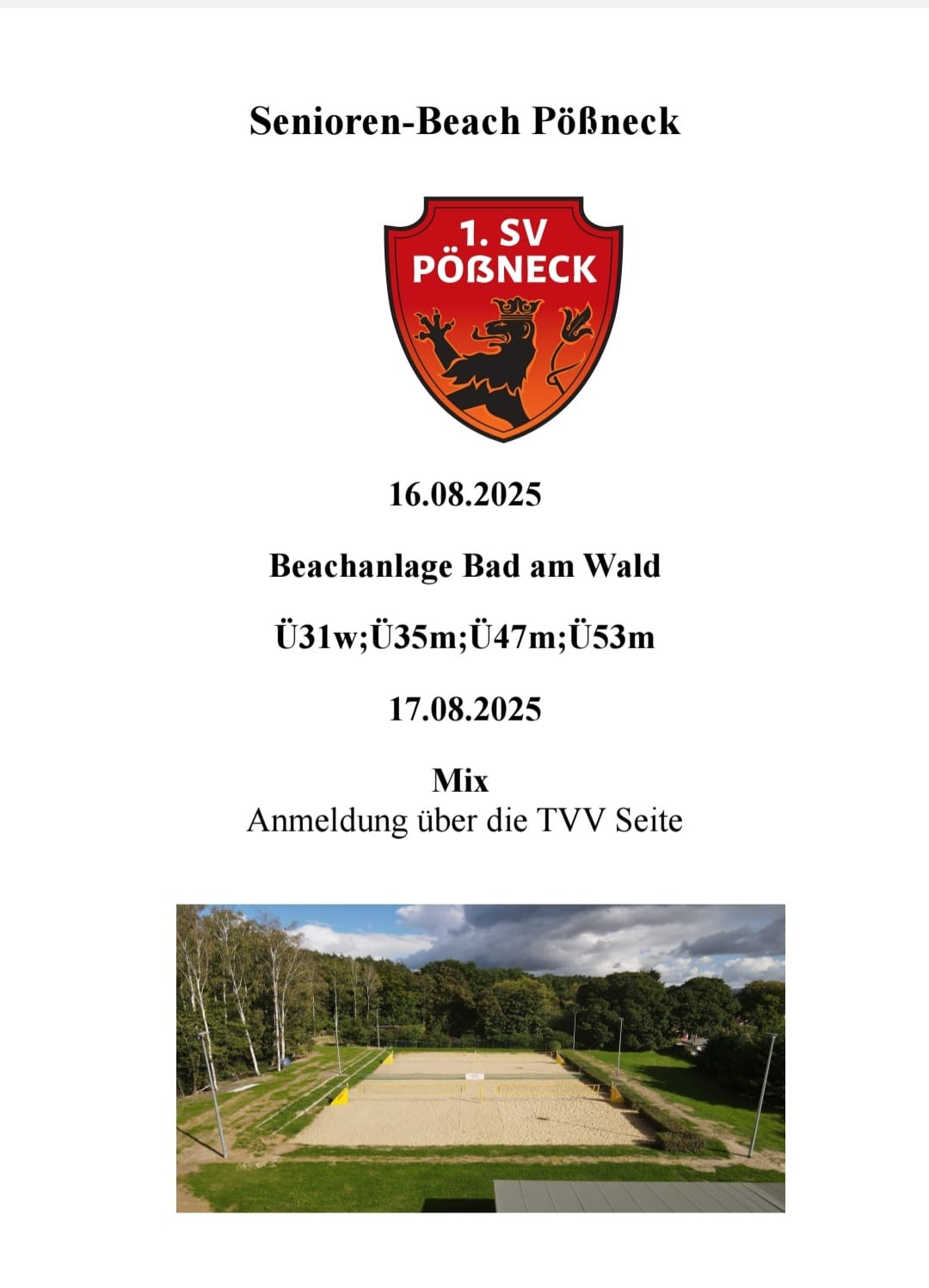 Bei bestem Beachvolleyballwetter kämpften 10 Teams um den Thüringer Seniorenmeister-Titel. Die Spiele waren stets fair und ansehnlich. Es konnte kein klarer Favorit ausgemacht werden, denn auch die späteren Turniersieger mussten für den Meistertitel 2-mal über den Tie-Break gehen. Aber am Ende setzte sich das Team Heidrich / Heidrich als ungeschlagener Turniersieger verdient durch und darf sich von nun an Thüringer Senioren-Beach-Meister nennen.