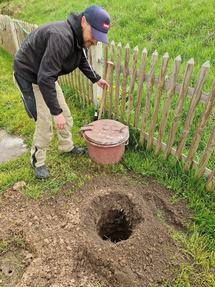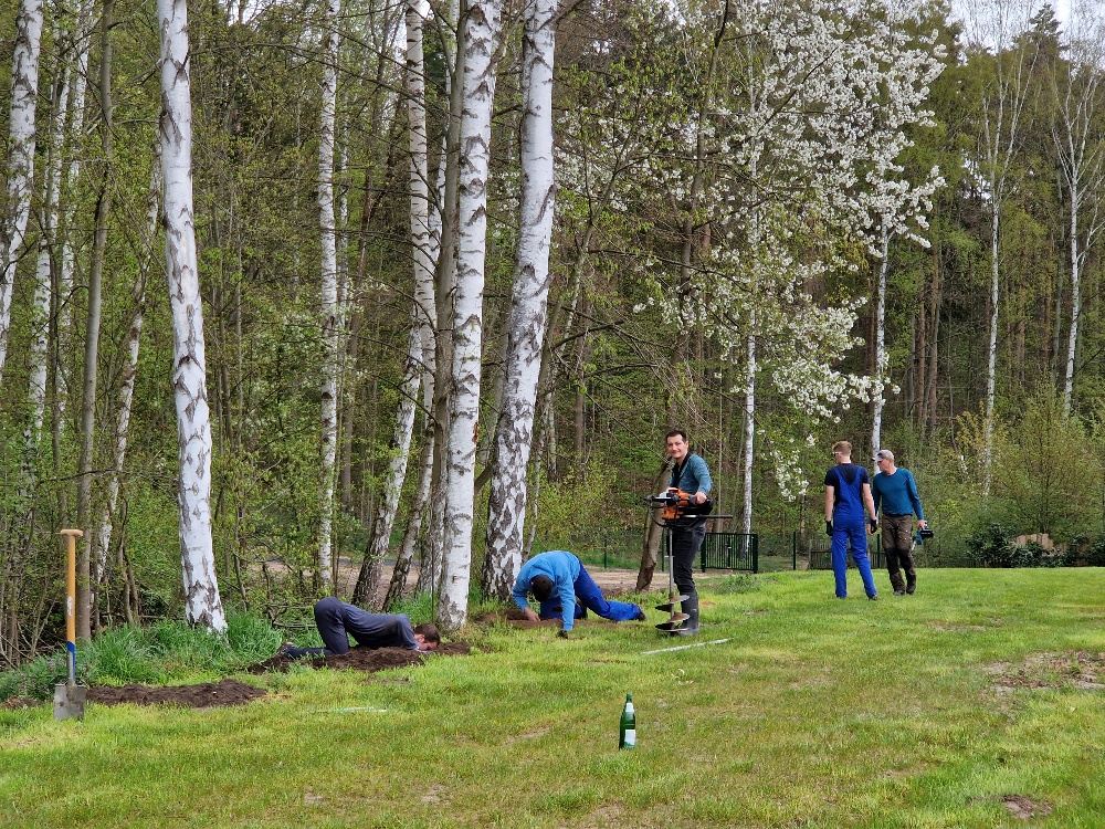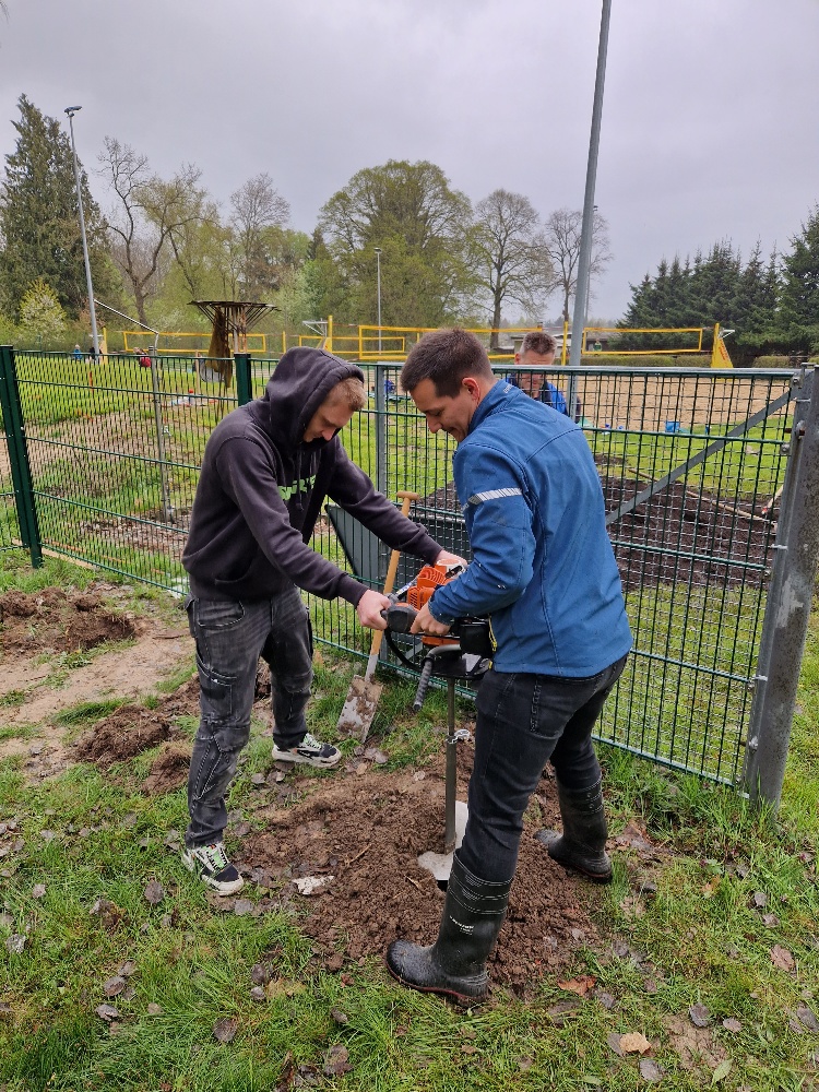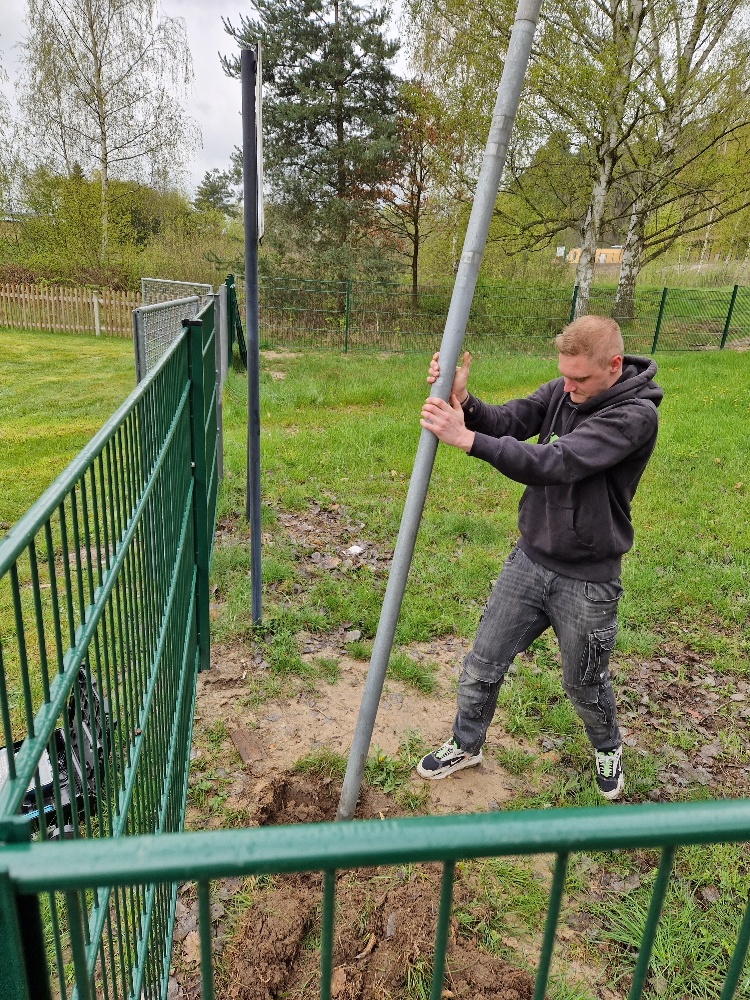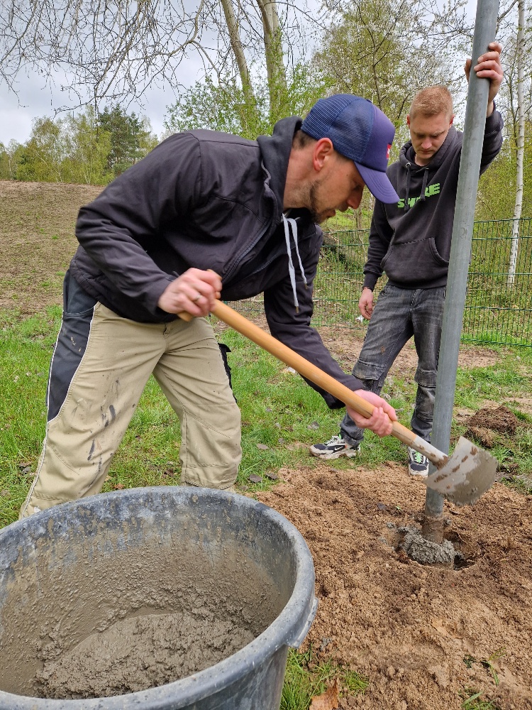 - setzten Fundamente für unseren neuen Zaun,