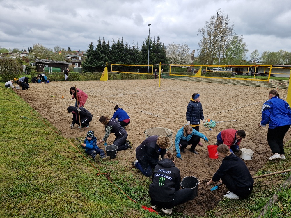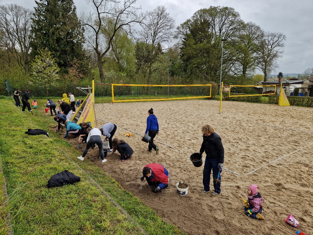 Arbeitseinsatz mit 53 Volleyballern auf der Beachanlage