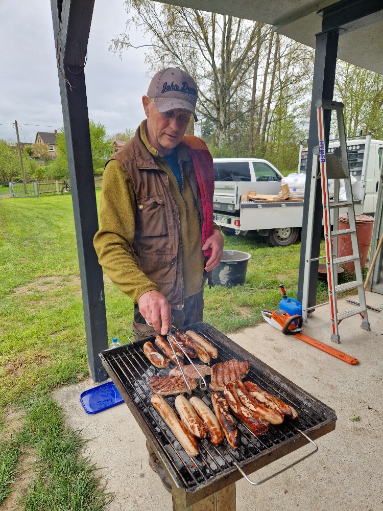 Zum Mittagessen gab es natürlich Leckeres vom Rost und als Schmankerl danach wieder Pößnecker Gelee-Bananen.