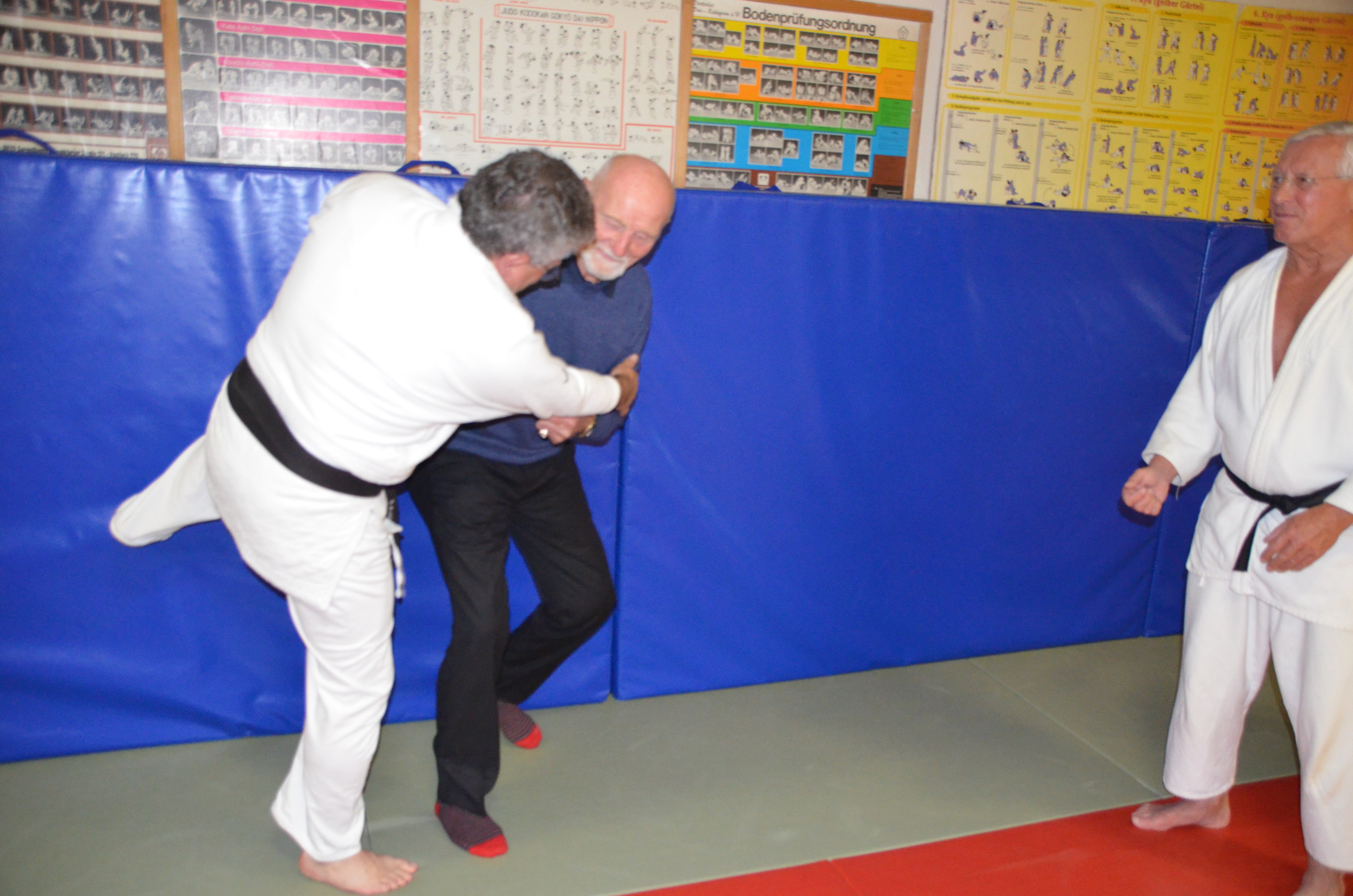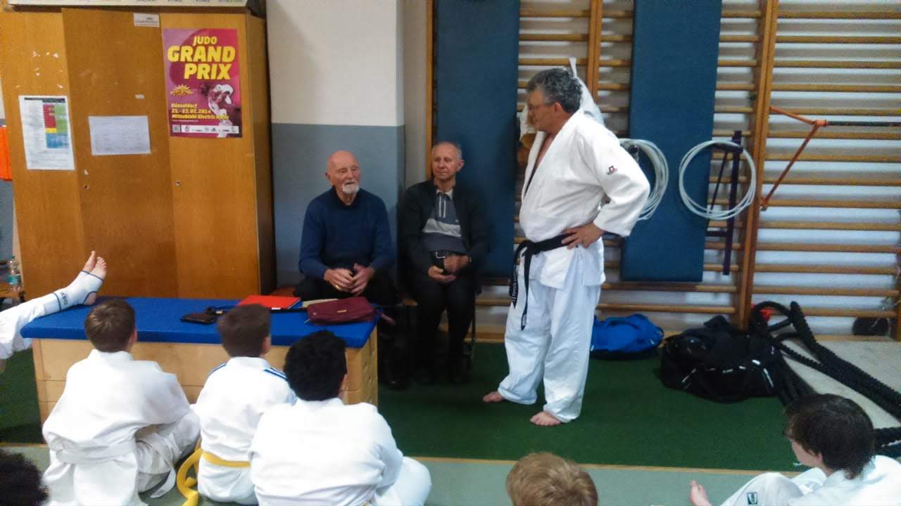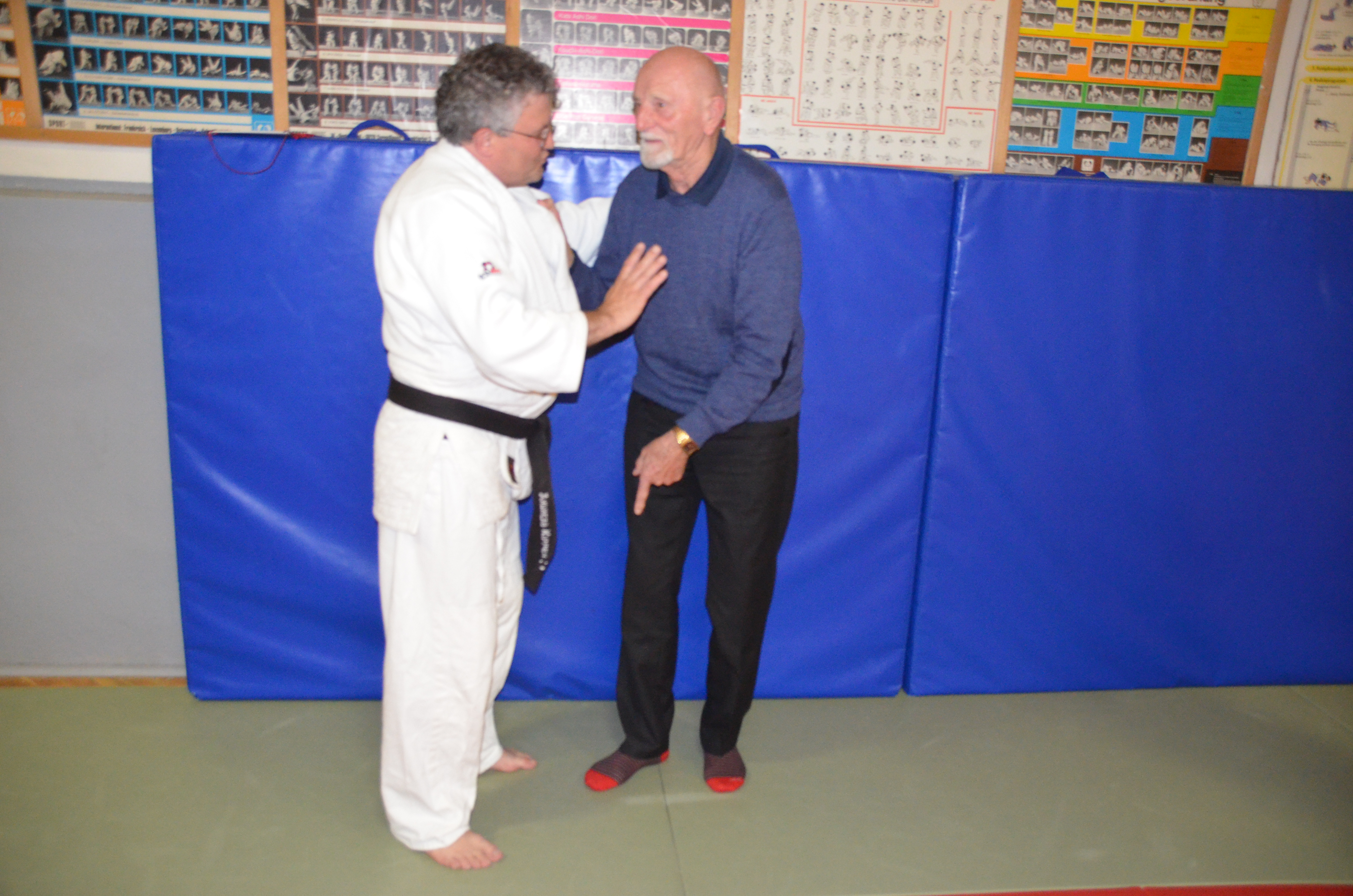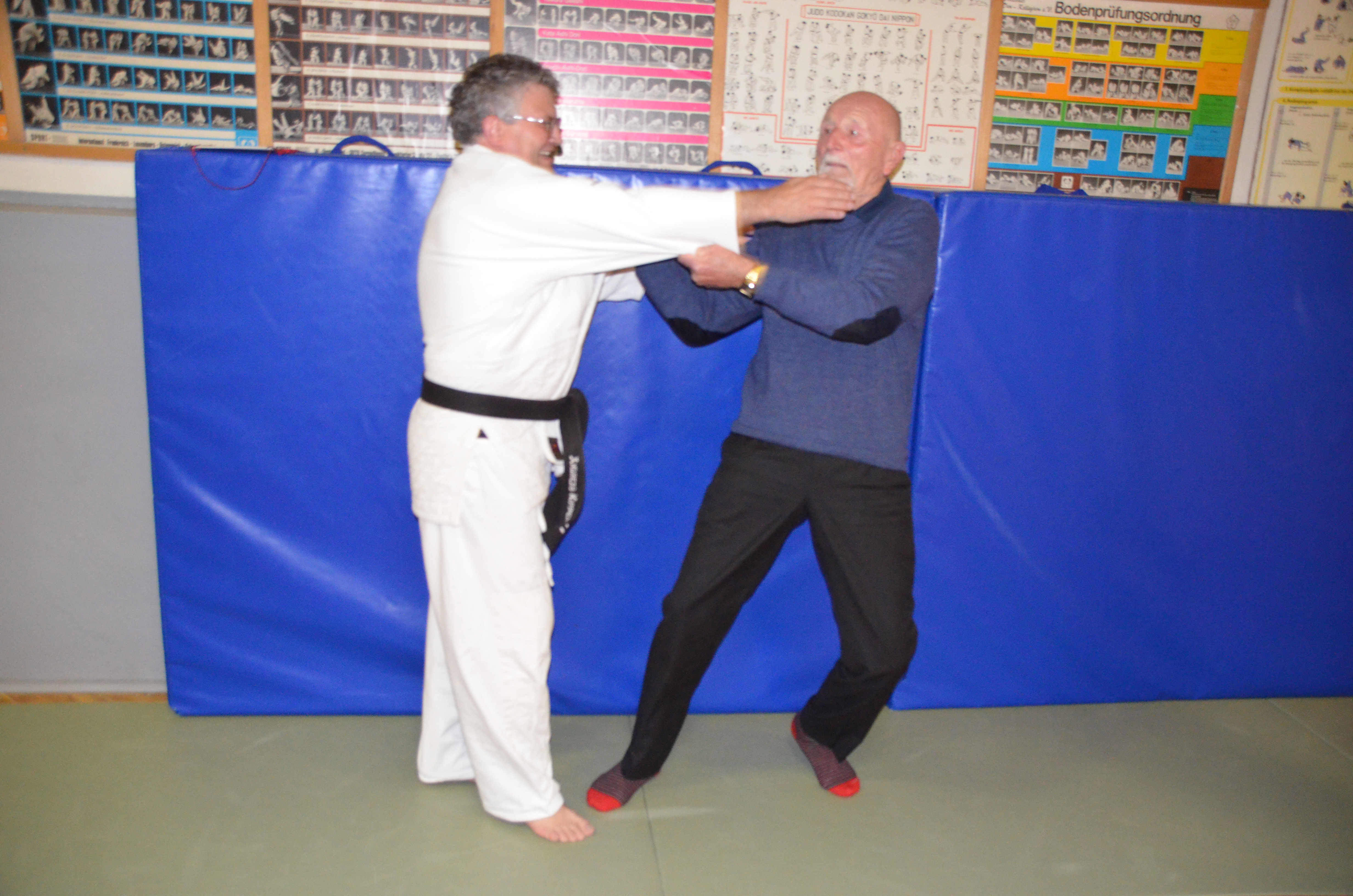 Er konnte es sich nicht nehmen lassen, mal wieder auf die Judomatte zu gehen und Andreas mit einer Wurftechnik (Morote Seoi Nage) zu Fall zu bringen. Dies konnte er mit seinen 90 Jahren noch erstaunlich gut.