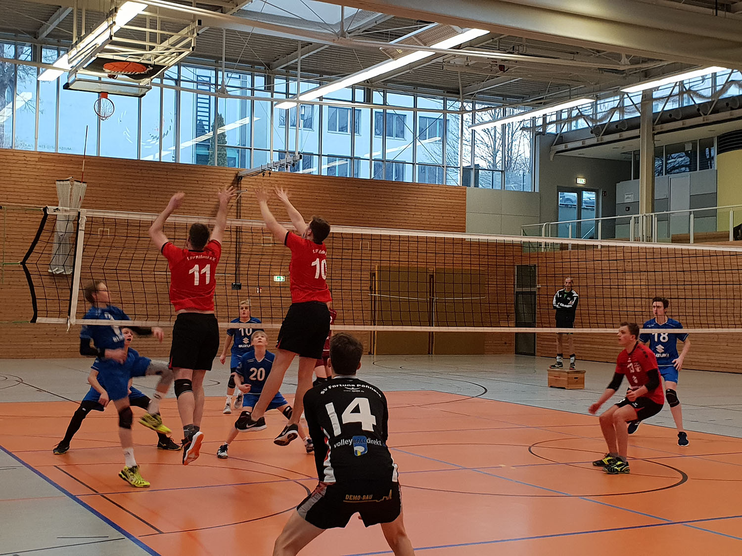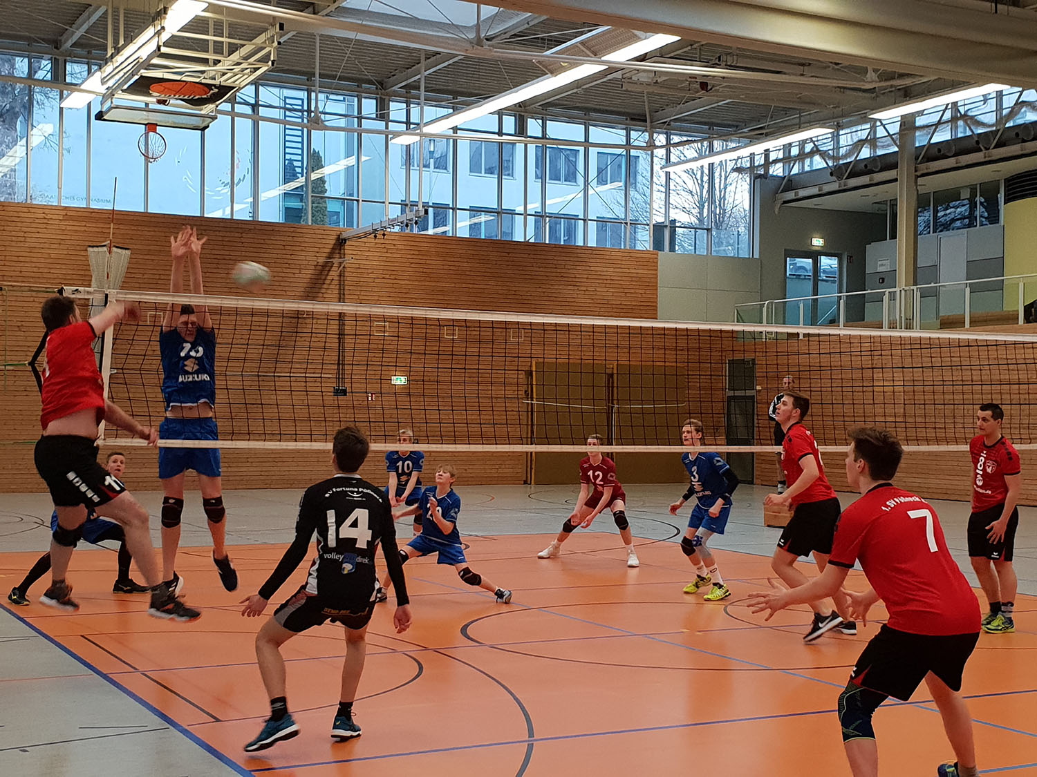 Gegner eins des Spieltages (das Sportgymnasiumteam aus Erfurt) wartete mit einem breiten Kader auf. Der zweite Pößnecker Gegner des Tages (Weimar) hingegen hatte keine Wechseloptionen und reiste nur mit sieben Spielern (inkl. Libero) in die Mozartstraße an. Die gegebenen Voraussetzungen in der großen und modernen Sporthalle des Sportgymnasiums waren somit nicht die schlechtesten für den Kühn-Sechser.