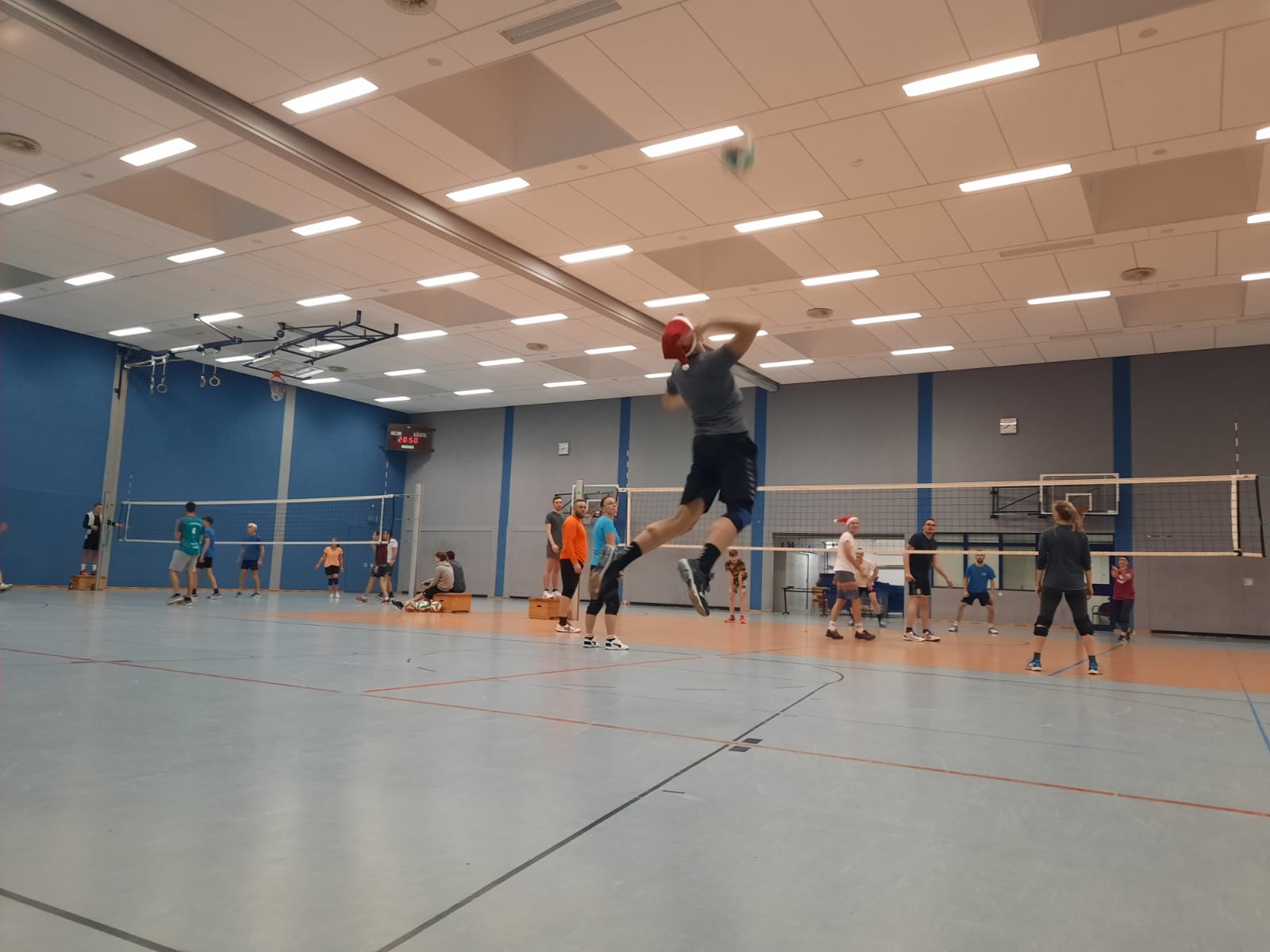 Rund 50 Volleyballer unserer Abteilung trafen sich zum alljährlich beliebten Adventstraining am Freitag vor dem 1. Advent. Bis kurz nach 0:00 Uhr spielte man in 9 gemischten Mannschaften ein sehr ausgeglichenes internes Volleyball-Turnier auf 3 Feldern. Neben großem Spaß am Netz wurde die Saison kurz Revue passiert und am Ende ein tolles Buffett genossen.