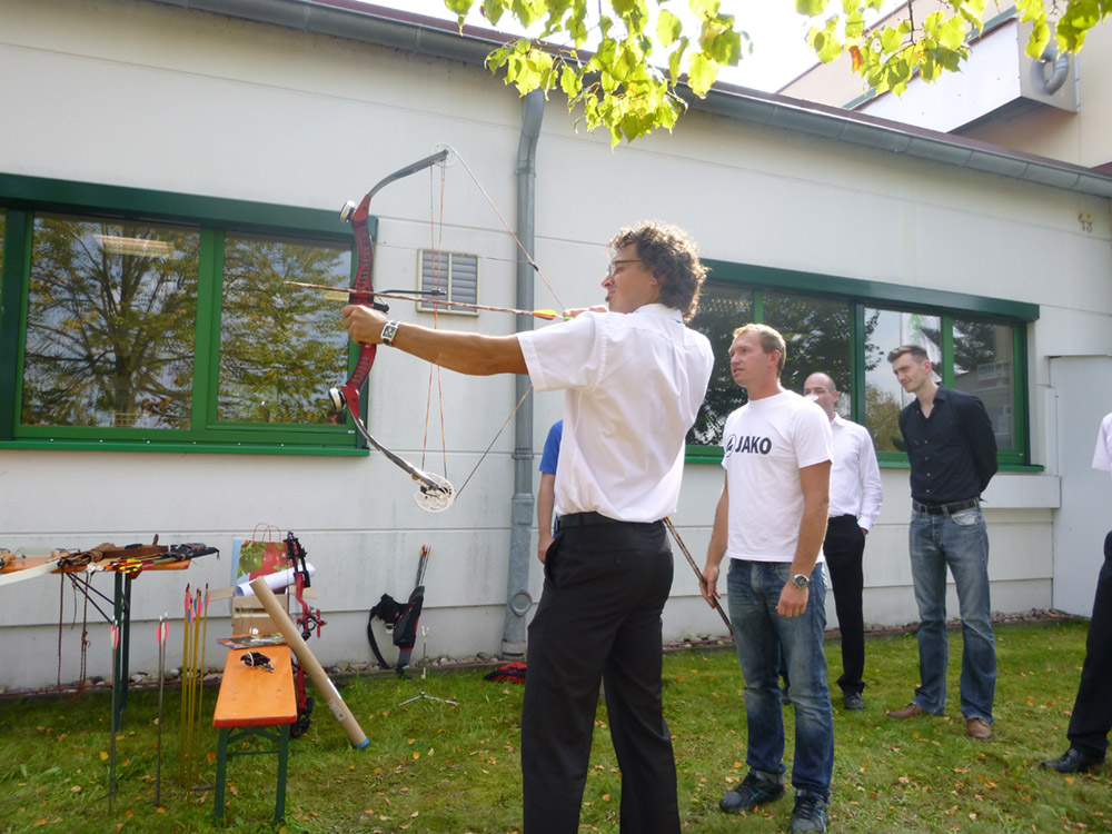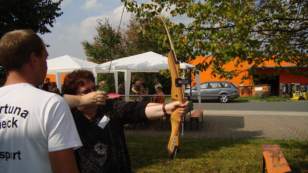 Die Abteilung Bogensport wurde eingeladen und hat für Gäste und Mitarbeiter Bogenschießen angeboten. Nach kurzer Einweisung mit dem Bogen durch Andreas Kunze und Marcus Schwalbe, konnten die Teilnehmer zwischen verschiedenen Bögen wählen und schießen. Das Angebot wurde sehr gut angenommen und bereitete allen viel Spaß.