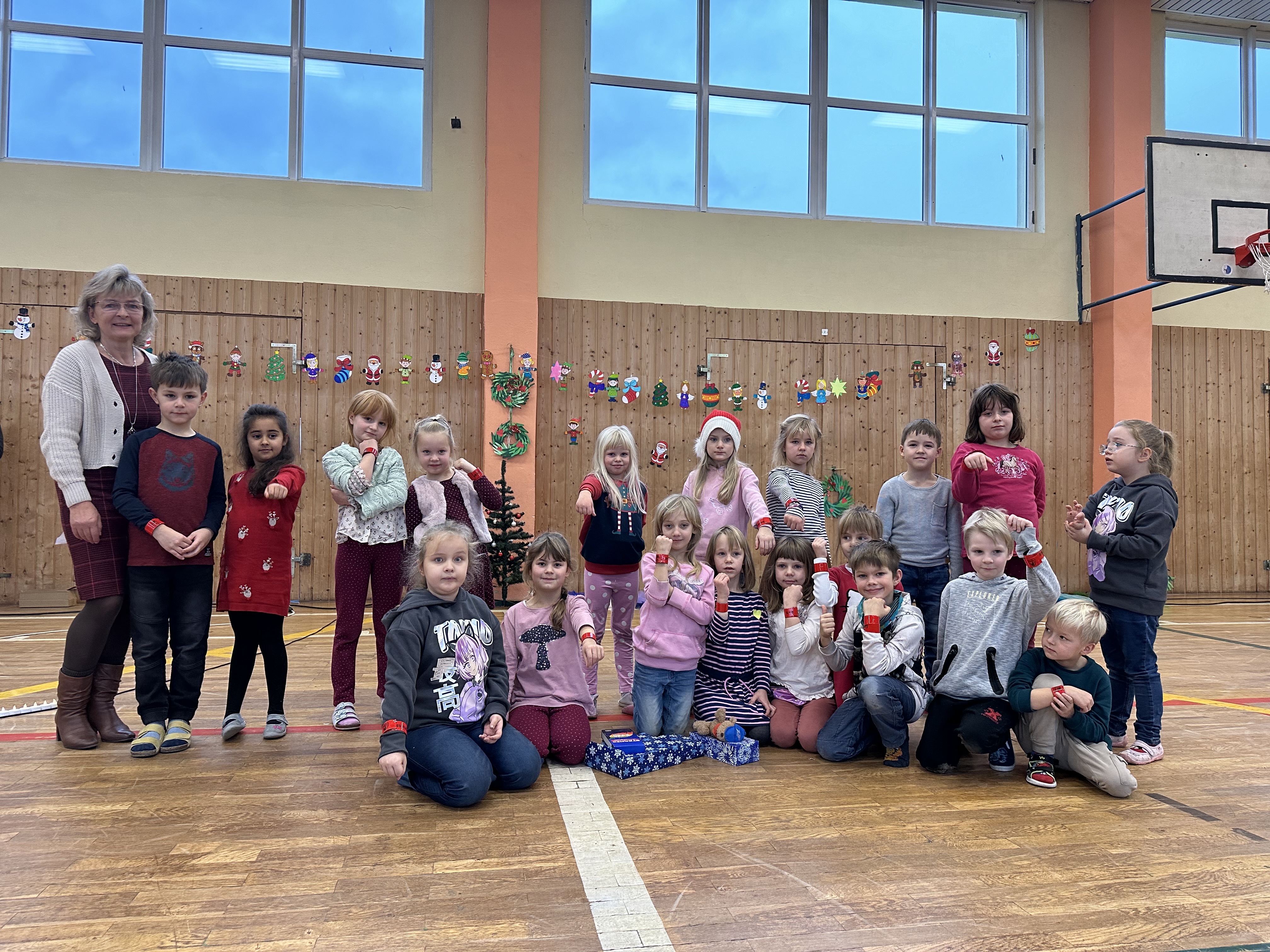 Unser Jugendwart Hans-Martin Stolzmann wurde am 6. Dezember zum Nikolaus für die 1a der Grundschule „Am Rosenhügel“ in Pößneck. Er überbrachte der Klasse – stellvertretend für alle ersten Klassen in Pößneck, Krölpa und Ranis – rote Reflektorbänder im 1.SV Pößneck-Design.